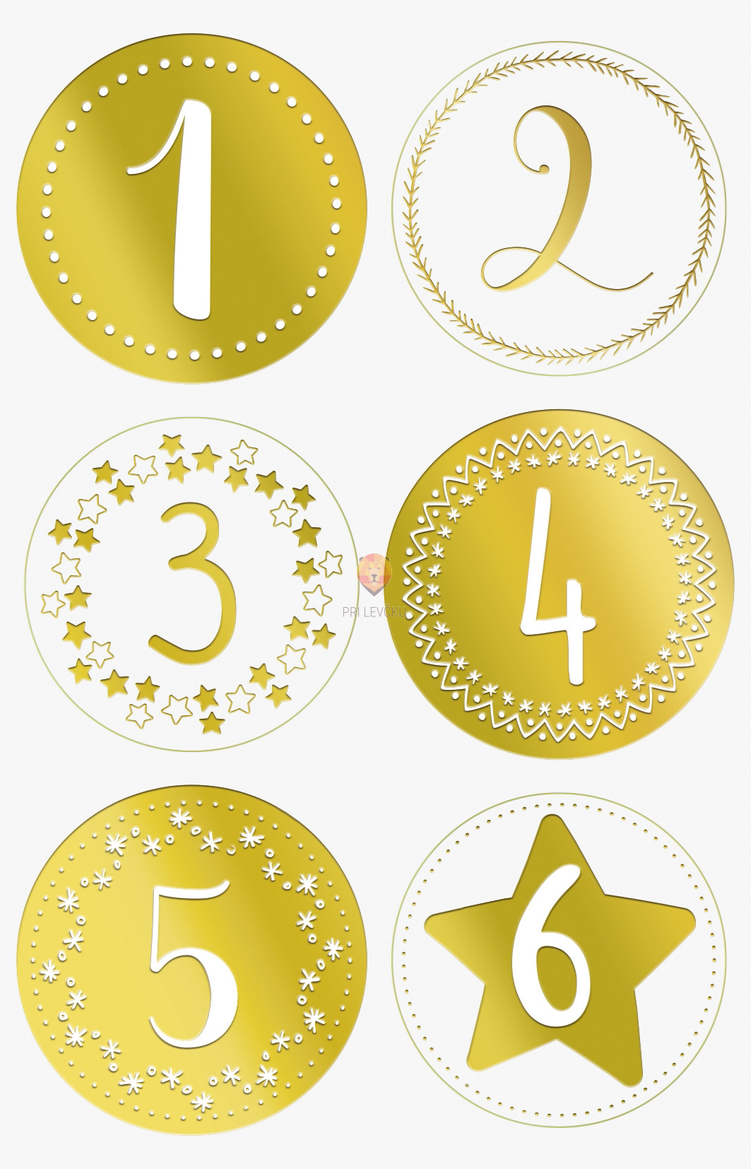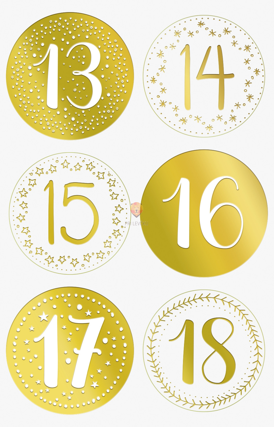Sestavlja ga 24 papirnatih vrečk dimenzij 13 x 7,5 x 24 cm s potiskom pikic na rdeči in beli podlagi in 24 barvnih samolepilnih okroglih nalepk s številkami.