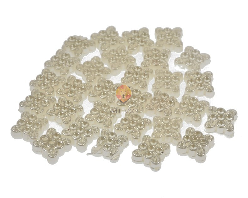 Akrilne perle belo-biserne barve. Z vzorčkom rožice.