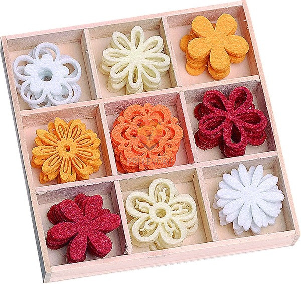 Barvni filc okraski v škatlici Rožice 45 kosov