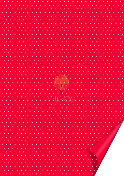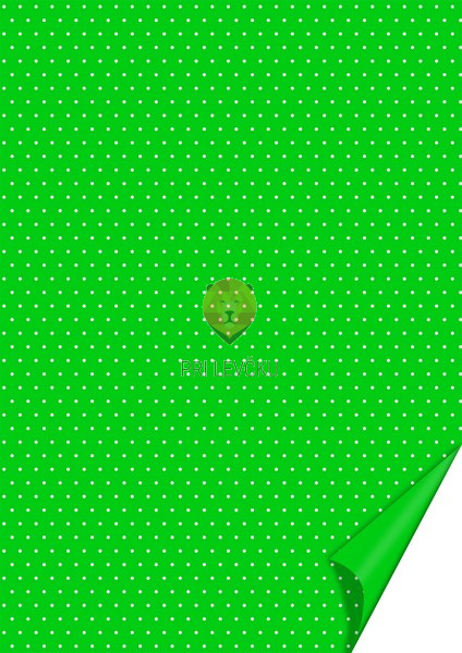 Karton v teži 200 g/m v videzu belih pikic na barvni podlagi in A4 formatu. Z obojestranskim potiskom - pikic na barvni podlagi na eni strani in enobarvnim potiskom na drugi strani.