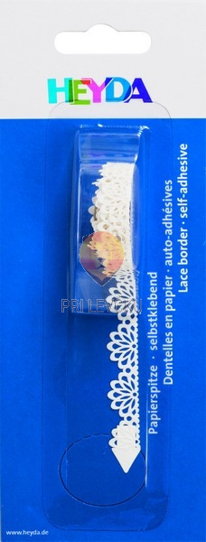 Papirnata samolepilna čipkasta bordura bele barve. Izdelana brez uporabe kislin in lignina.