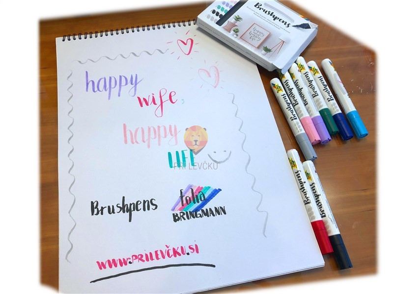 Priljubljeni flomastri Brushpens z mehko in fleksibilno konico, ki spominja na čopič. Tako omogočajo pisanje in risanje pod različnim kotom z linijami različnih debelin. Z različnim pritiskom lahko ustvarjate tanke fine linije debeline 1 mm pa vse do močnejših linij, ki merijo 7 mm.