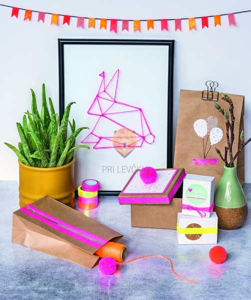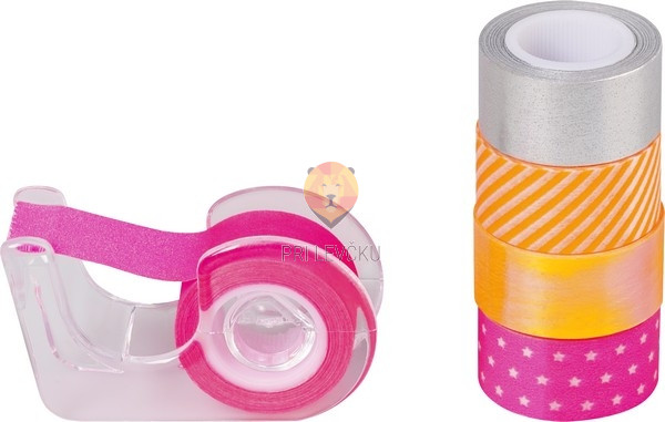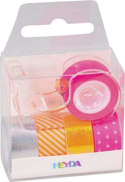 Set petih barvno, vzorčno in barvno usklajenih dekorativnih lepilnih trakov s praktičnim podajalnikom. V živahnih fluorescentnih barvah, ki zagotovo vzbudijo pozornost.
