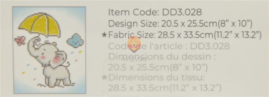 Velikost motiva je 20,5 cm x 25,5 cm, velikost tkanine pa 28,5 x 33,5 cm.