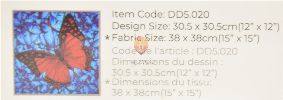 Velikost motiva je 30,5 cm x 30,5 cm, velikost tkanine pa 38 x 38 cm.
