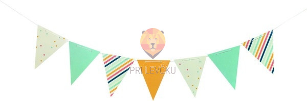 Girlanda iz barvitih papirnatih zastavic dolžine 3,5 m. Sestavlja jo 14 zastavic dimenzij 20,5 x 16 cm.