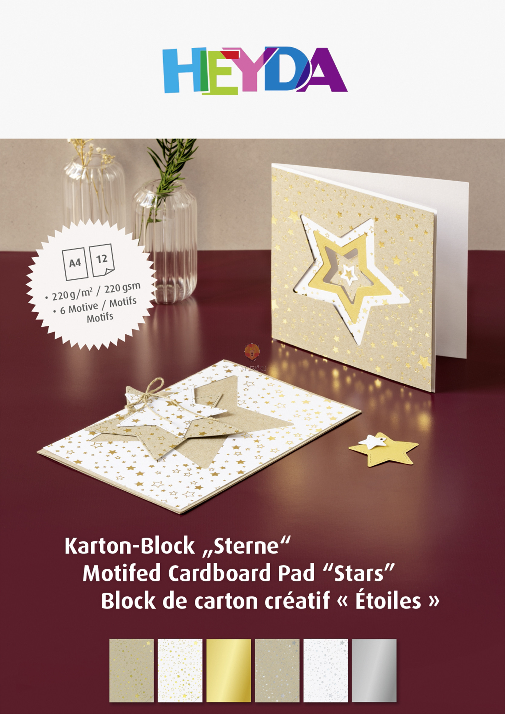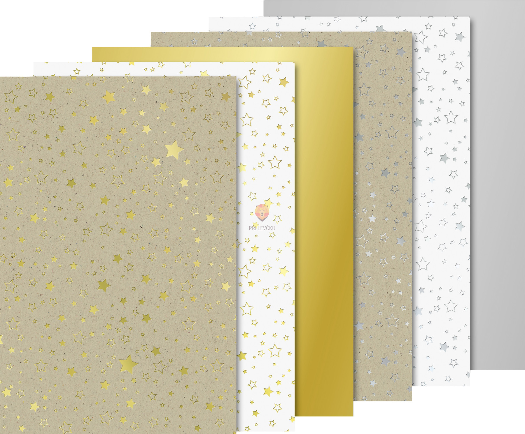 Blok različnih vrst kartonov v šestih različnih motivih s potiskom iz zlate in srebrne vroče folije.