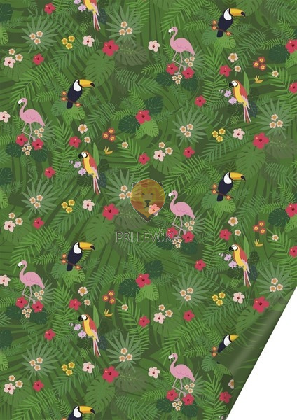 Karton z motivi flamingov, tukanov in papig.