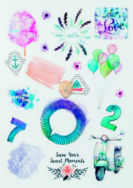 Ljubki in romantuični kartonasti izrezki z akvarelnimi motivi.
