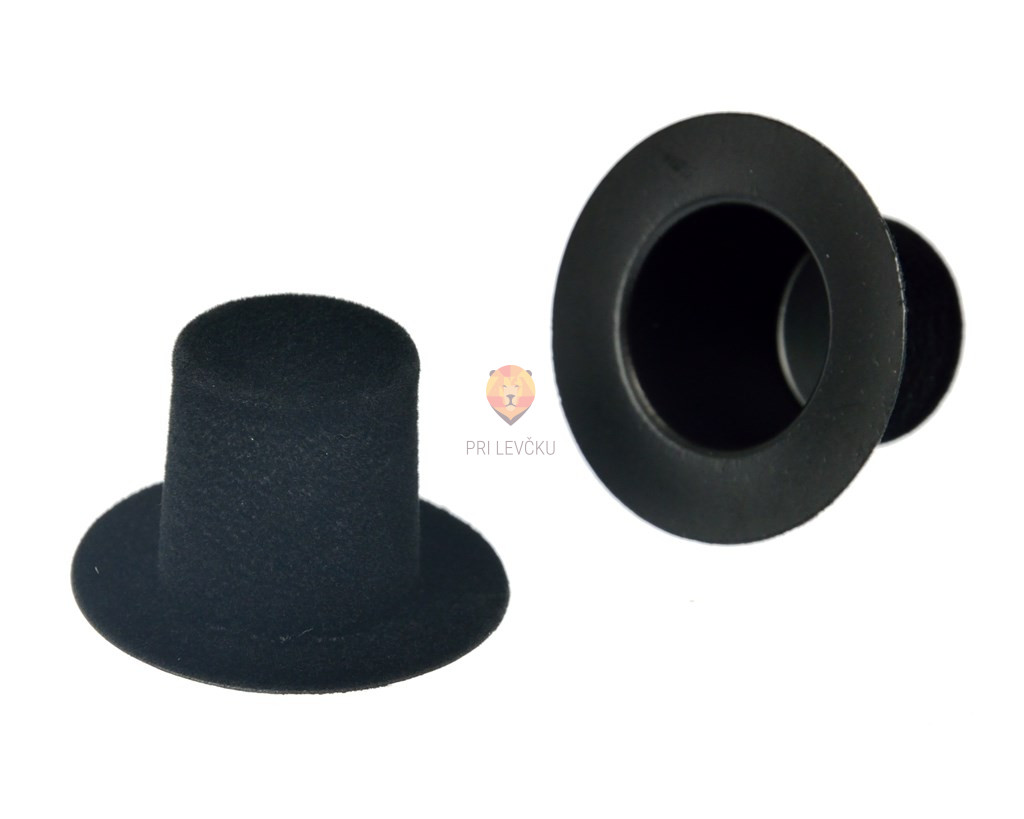 Črna klobučka cilindra, namenjeni dekoraciji. Velikosti 4 cm.