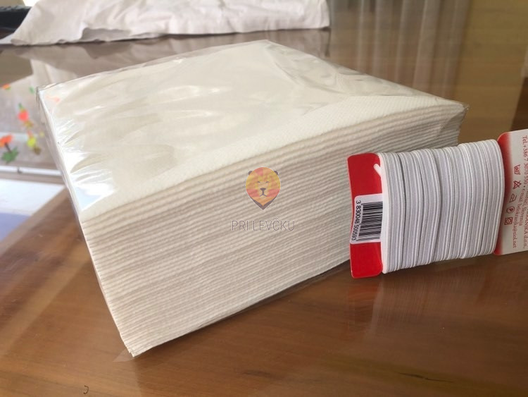 Komplet za domačo izdelavo zaščitnih mask iz 4 slojnih servietov Airlaid (pihana celuloza - material je podoben tekstilu).