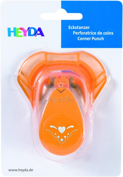 Luknjač, primeren za okraševanje kotov listov ali voščilnic. V motivu kotne bordure z motivom srčka.