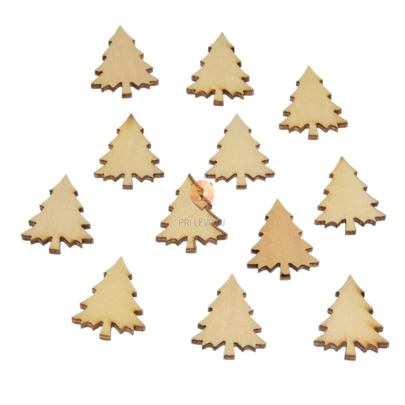 Leseni okraski v naravni barvi. V obliki smrečic.