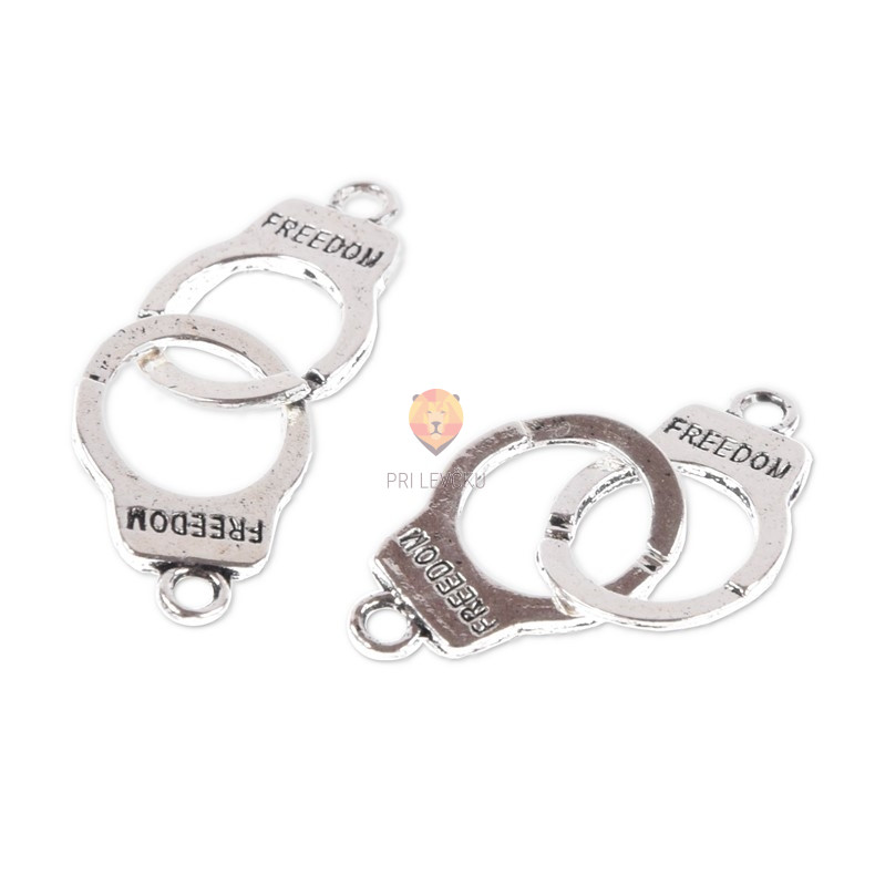 Kovinski obeski prekrižanih lisic z vtisnjenim napisom "Freedom."