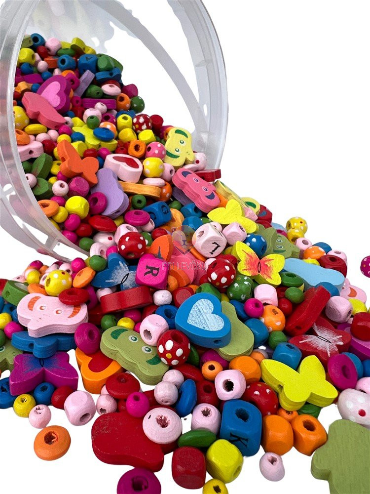 Ta veliki lonček prinaša pravo eksplozijo lesenih oblik, barv in domišljije! V njem te čaka kar 300 g raznolikih lesenih perl, med katerimi najdeš črke, kocke, ploščate perle, simpatične metuljčke, srčke, slončke in še več. Vsaka perlica ima svoj značaj – tvoj izdelek pa bo vedno edinstven.