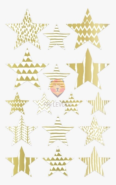 V motivu zvezdic z različnimi vzorčki, v različnih velikosti in v zlati barvi.
