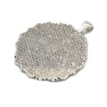 Okrogel medaljon v platinasti barvi.