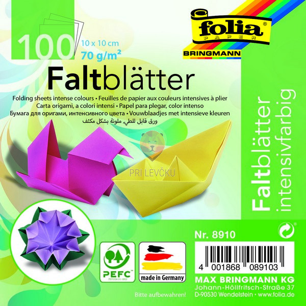 Papir za zgibanje origamija v dimenzijah 10 cm x 10 cm. V izjemno intenzivnih barvah.