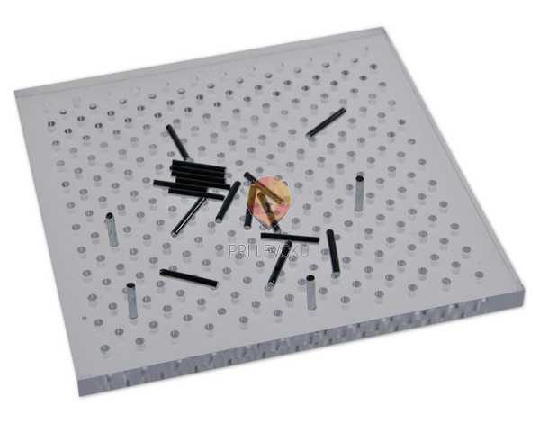 Plošča dimenzij 11 cm x 11 cm in 20 kos zatičev.