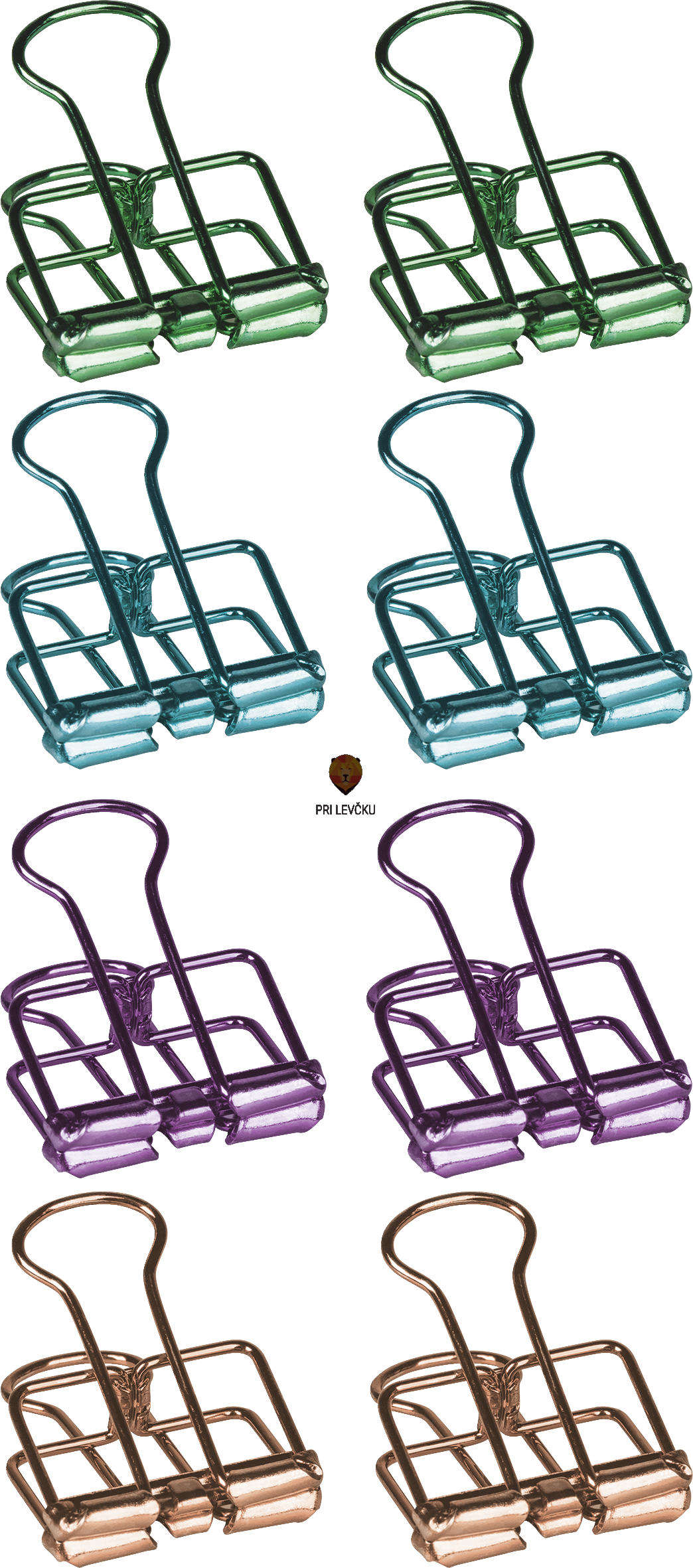 Trpežne kovinske barvne sponke. Uporabljajte jih lahko za zapiranje darilnih embalaž in vrečk, pritrjevanje etiket, trakov ali pa preprosto za spenjanje listov.