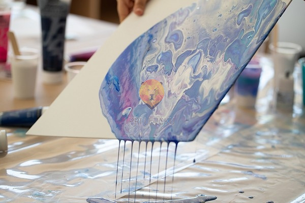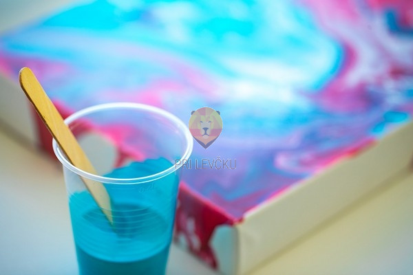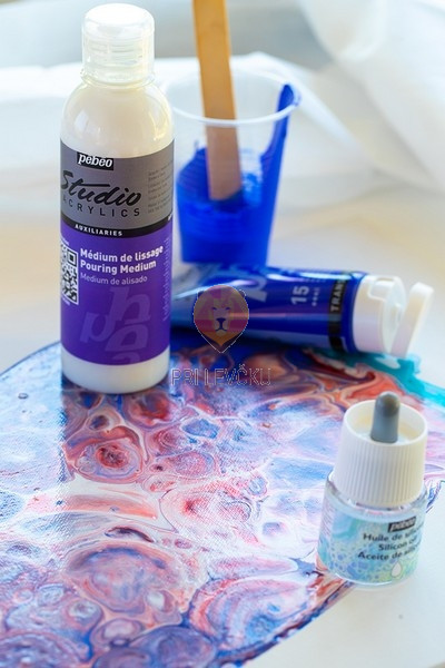 2. Za tehnike kapljanja in zlivanja ("pouring") pomešanega z barvo. Sredstvo omogoči, da barva lepo teče in se preliva.