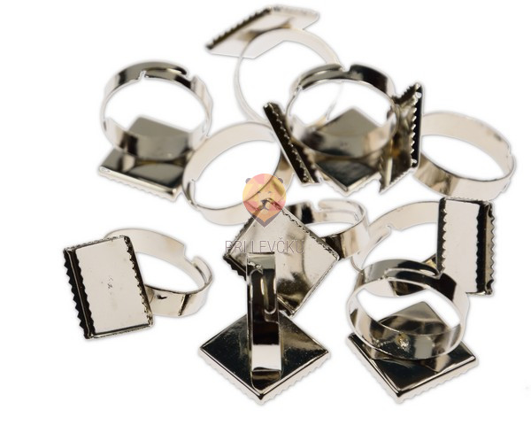 Prstan platinaste barve s ploščico 14 x 14 mm, 10 kos