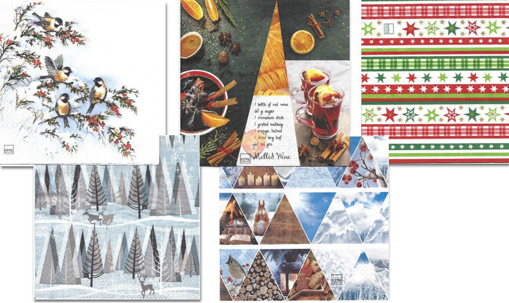 Pakiranje: 10 servietkov, 5 različnih motivov (vsak motiv po dva servietka).