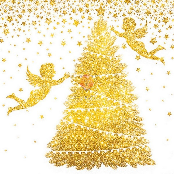 Papirnati servieti z motivi zlate smrečice, ki ko obkrožajo zvezdice in angelčka.
