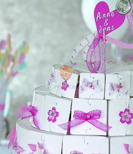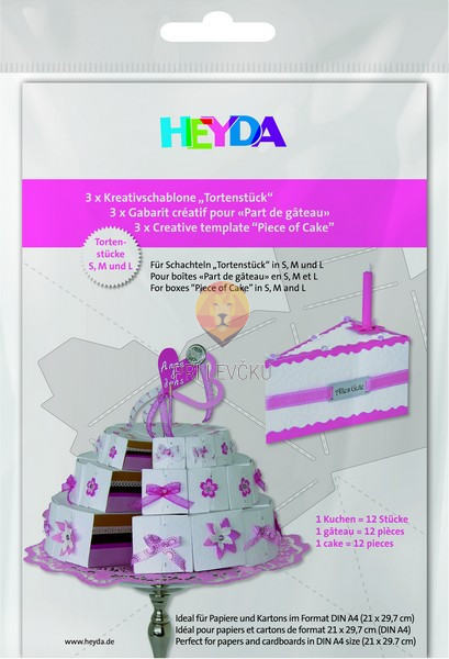 Šablone iz umetne mase, s pomočjo katerih lahko iz kartona izdelamo lične škatlice v obliki koščkov torte in jih še naknadno okrasimo z dekorativnimi elementi.