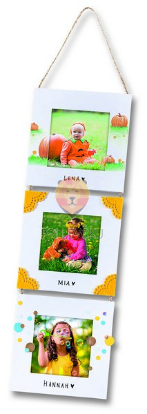Okvirji so med seboj povezani z vrvico tako, da visijo drug nad drugim in predstavljajo lepo stensko dekoracijo. Na zgornjem je zanka za obešanje.