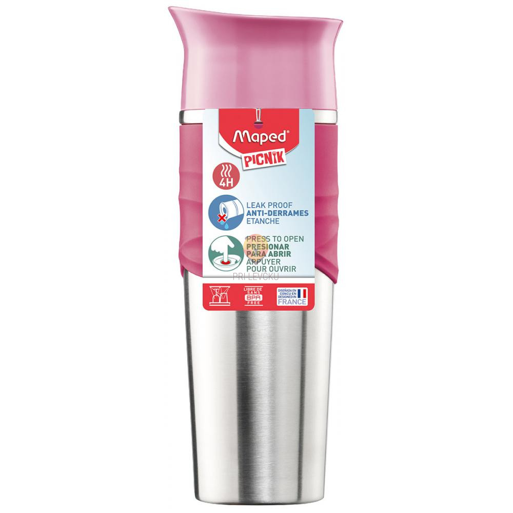 Lonček iz nerjavečega jekla je iz dvojnega vakuuma, kar napitek ohranja topel do 4 ure, hladnega pa do 6 ur. Praktičen pokrovček s sistemom proti razlitju omogoča enostavno uporabo z enim klikom.