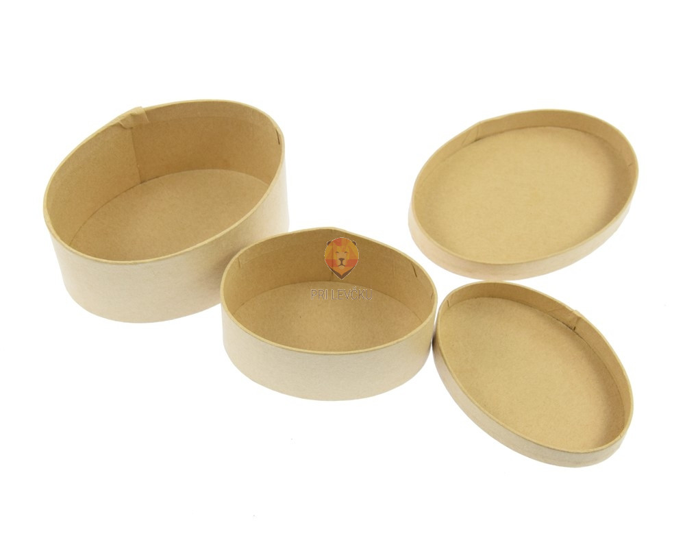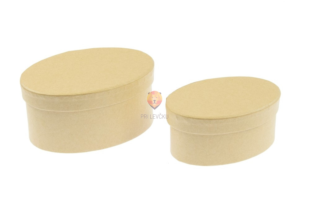 Set 2 ovalnih kartonastih škatlic s pokrovom.
