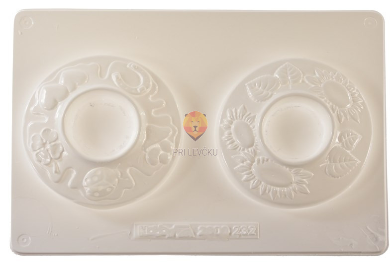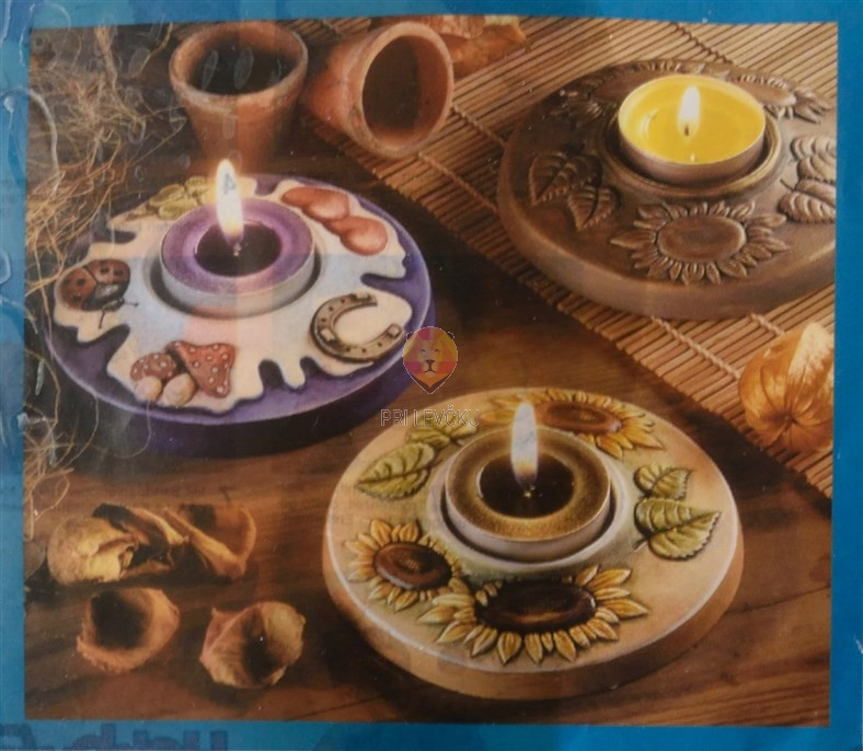 Kalup vsebuje dva motiva svečnikov premera 9-10 cm.