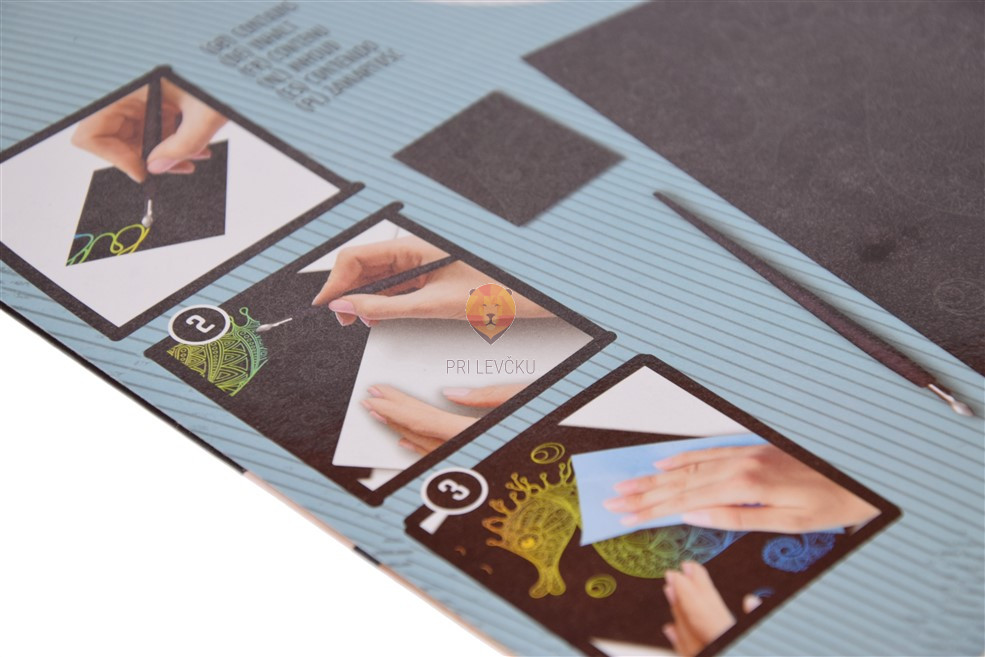 Kako praskanko uporabimo? S črne površino zdrgnemo črn vrhnji sloj v začrtanem vzorcu.