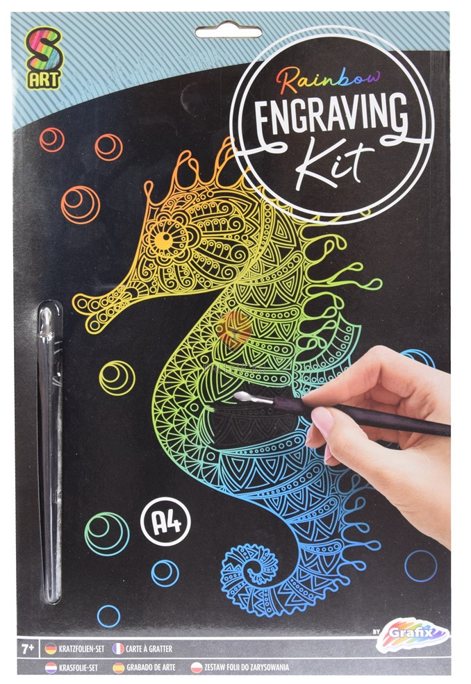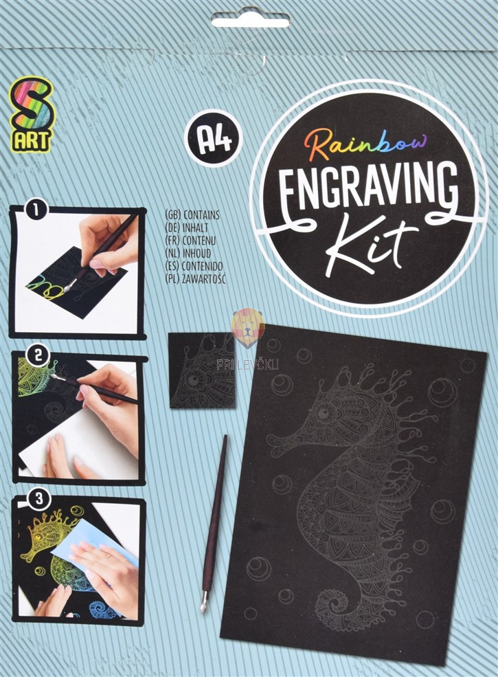 • A4 črn list/praskanko z izrisanim motivom morskega konjička,
