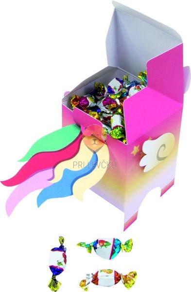Modelčki za škatlice so predhodno potiskani, izrezani in pripravljeni za prepogibanje, vi jih le še zlepite skupaj in napolnite z ljubkimi presenečenji.