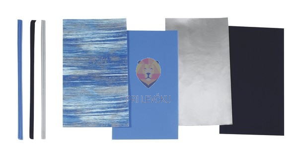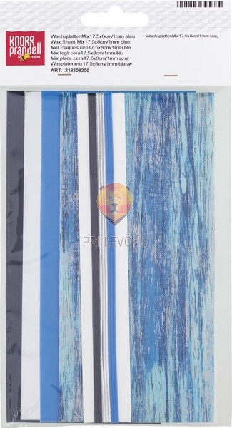 Set vsebuje:plošče iz voska v modrem barvnem miksu - 175 x 80 x 0,5 mm ter in 9 voščenih trakov dimenzij 175 x 1 mm.